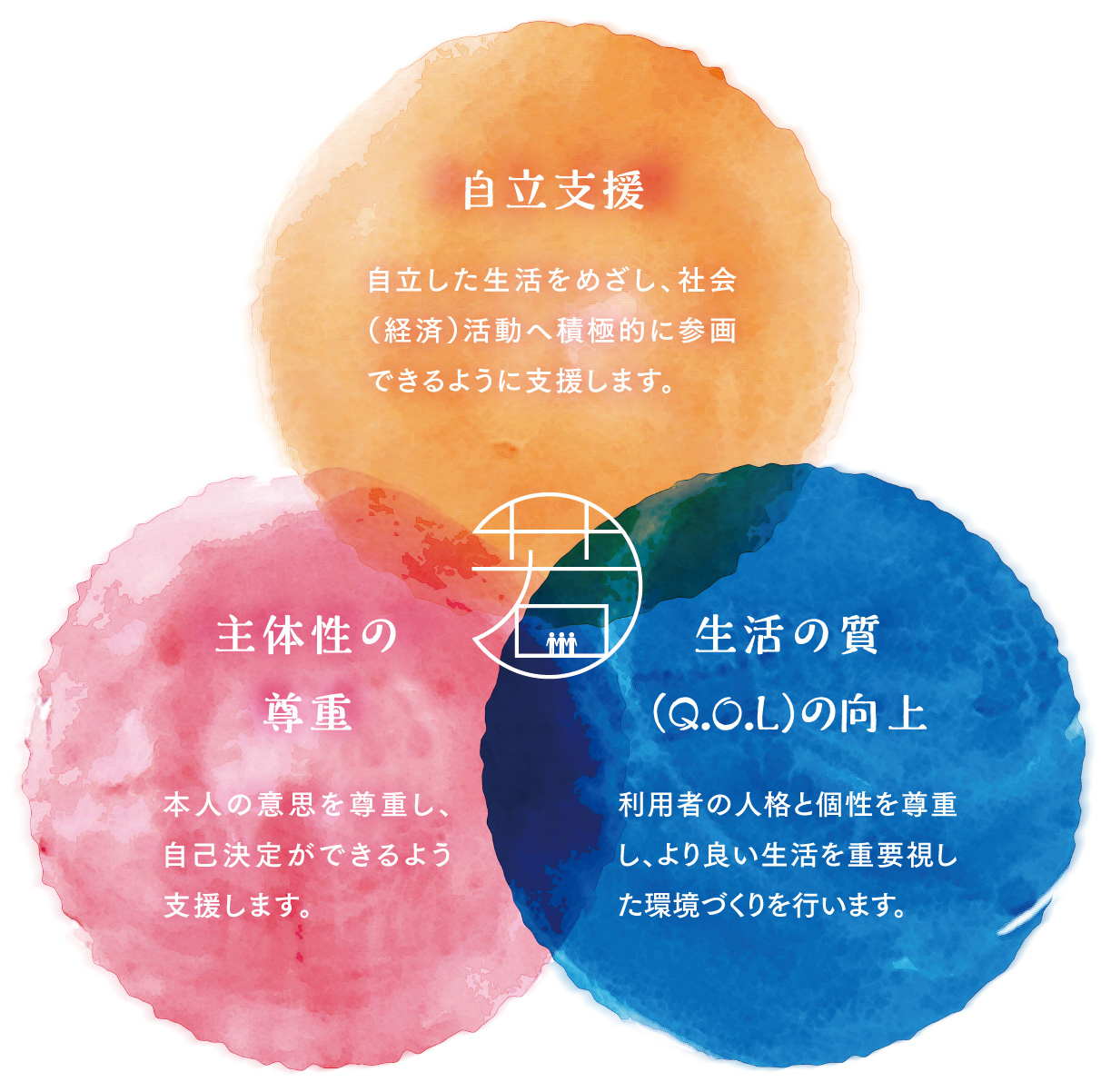 「完全参加と平等」の目標に向けて利用者の基本的人権を最大限尊重し、